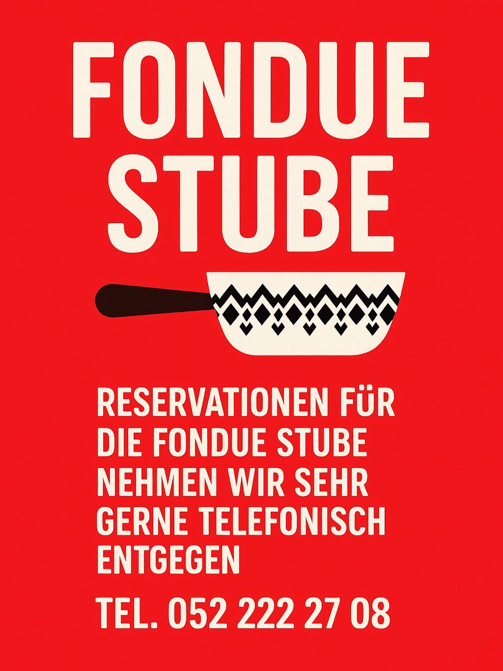 Reservationen ausschliesslich telefonisch innerhalb der Öffnungszeiten: